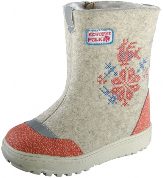 | Валенки Котофей из натурального войлока надежно защитят ножки Вашего ребенка в морозы. Толстая стелька так же выполнена из войлока. Вышивка крестиком в стиле народного фольклора ярко выделяет модель. |