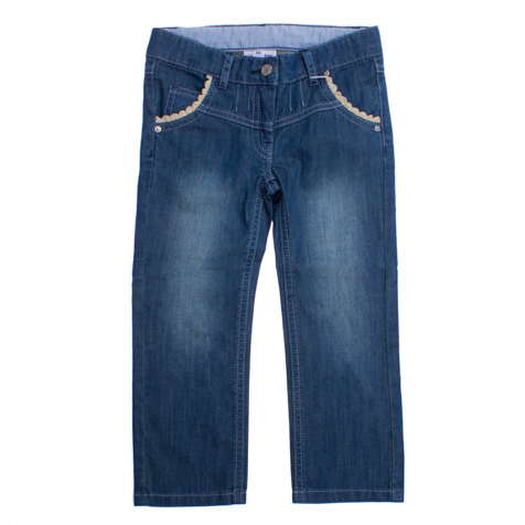 | Эта удобная модель совмещает в себе стильный вид настоящих джинсов и комфорт, присущий качественной детской одежде. Хлопковые брюки, стилизованные под деним, снабжены мягким поясом на резинке, который не мешает ребенку резвиться с подружками на детской площадке и свободно двигаться в процессе активной игры. В качестве застежки модель снабжена надежной молнией и пуговицей. Два боковых кармана придают брючкам пикантный вид благодаря отделке белой ажурной тесьмой. |