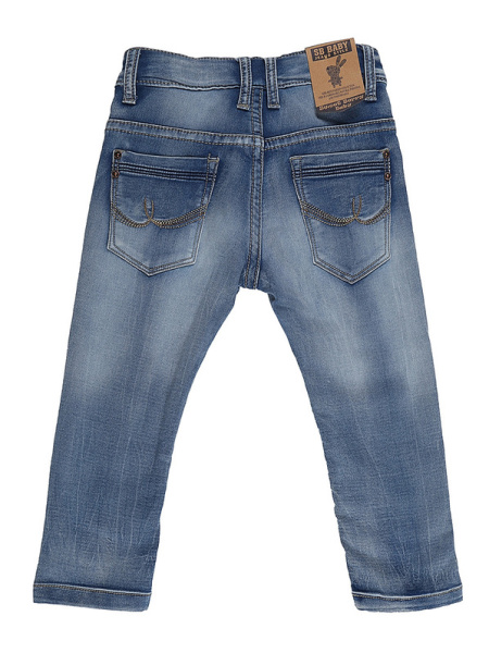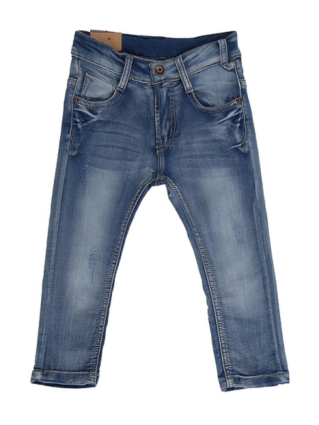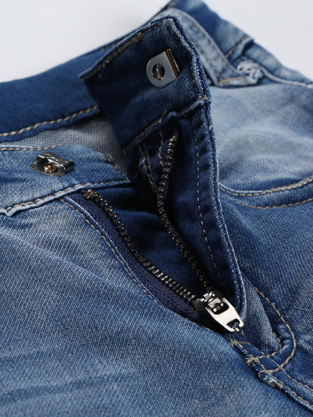 | Модные детские джинсы глубокого синего цвета смотрятся стильно и достаточно эффектно. Выполнены из хлопка и незначительного количества эластана. Брюки хорошо держат форму, посадка регулируется специальными эластичными лентами, размещенными в боковой части пояса. Фиксируются джинсы на молнию и пуговицу, также оснащены удобными врезными карманами и декорированы искусственными потертостями. |