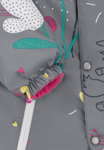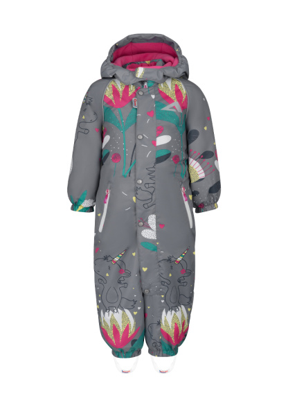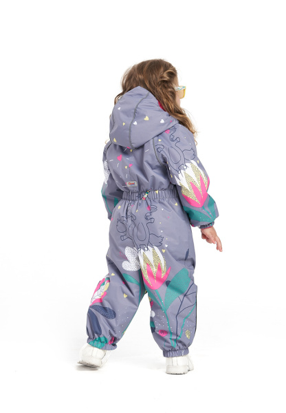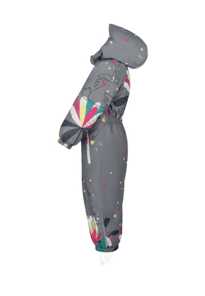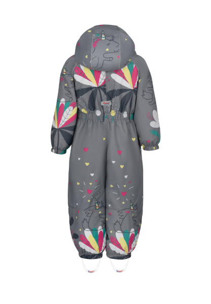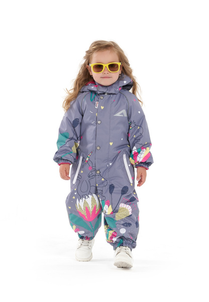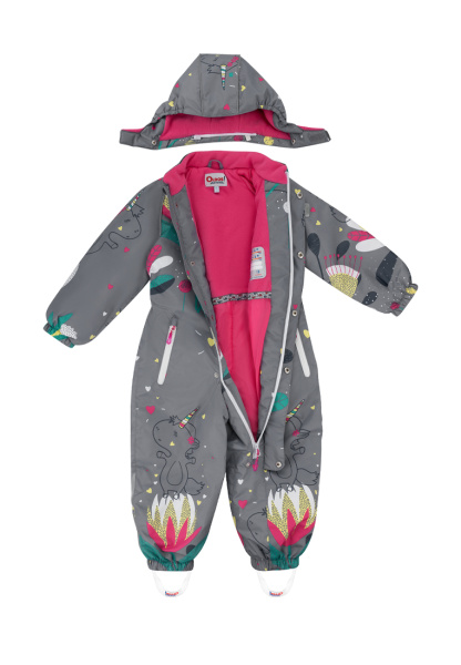 Комбинезон имеет съемный капюшон с резинкой для лучшего прилегания, двойную ветрозащитную планку с защитой подбородка, воротник-стойку с мягкой флисовой подкладкой.