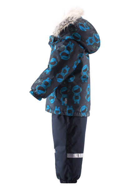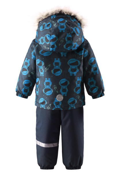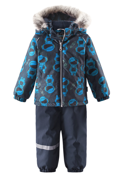 | Зимний костюм Lassie для мальчика с яркими космонавтами на куртке. Сверхпрочный материал с водо- и грязеотталкивающей пропиткой позволит маленькому первооткрывателю не ограничивать себя в действиях, а маме не беспокоиться о сохранности одежды. |