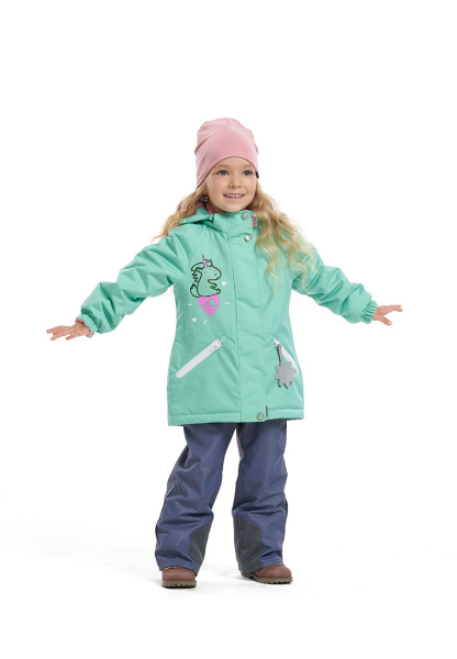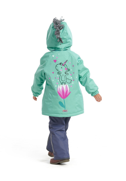 | Костюм утепленный для девочки с чудесным единорогом на груди и спине. Капюшон с декоративными ушками, кисточками и брелок в форме звезды подчеркнут индивидуальность. Костюм отлично сохраняет тепло, легко стирается и быстро сохнет. |