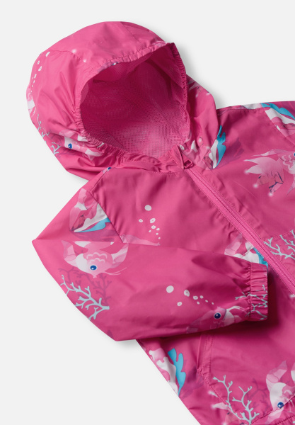 | Легкая ветровка с морским принтом, с забавными животными и рыбками. Отличный летний вариант на прохладную погоду, защищающий от дождя и ветра. Подкладка сетка делает куртку очень легкой и компактной. |
